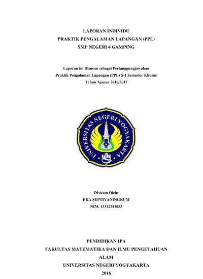 Universitas ahmad dahlan merupakan salah satu sarana yang digunakan sebagai latihan mengajar bagi mahasiswa calon guru. Laporan individu praktik pengalaman lapangan ( ppl ) smp negeri 2 muntilan disusun dan diajukan guna memenuhi persyaratan dalam menempuh mata kuliah ppl . 8/2/2019 contoh laporan ppl iain. Media berbagi pengetahuan contoh laporan ppl smpn 23 bandar. Laporan kegiatan praktik pengalaman lapangan ppl smp.